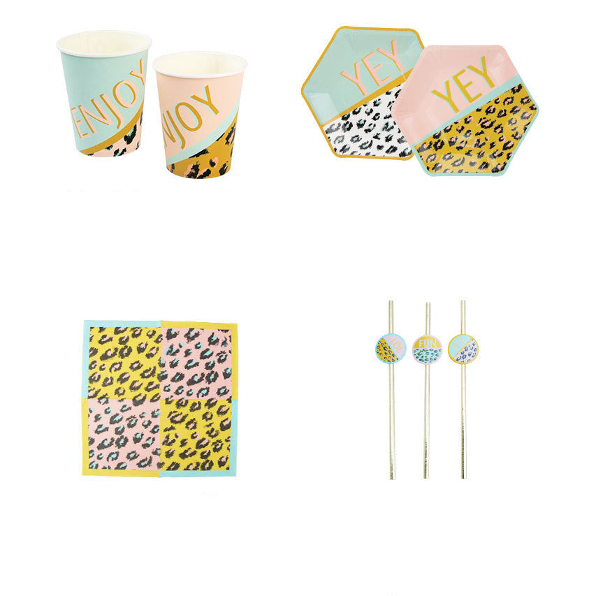 Product Information: Material: paper Size: (A) 8 Leopard Paper Plates (B) .8 leopard paper cups (C) 16 Leopard Printed Tissues... Read more