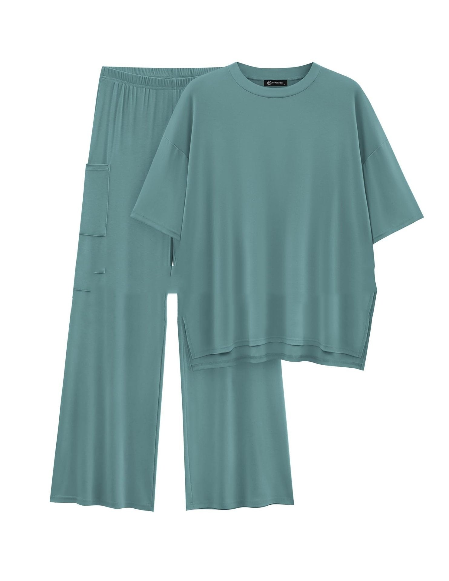 Casual Short Sleeve Pullover Top Wide Leg Pants Casual Suit