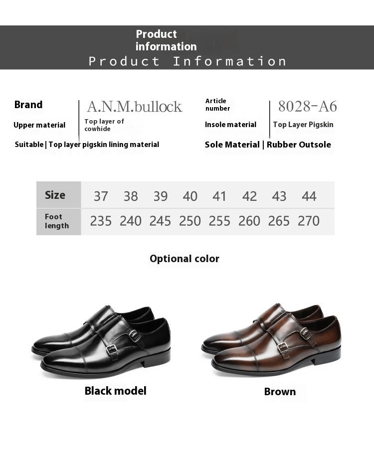 Double Buckle Design First Layer Cowhide Men's Business Leather Shoes