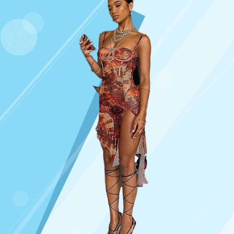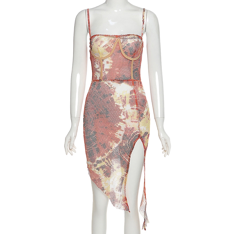 Product Information: color type: red Skirt type: pencil skirt Sleeve: Sleeveless Skirt length: mid skirt Popular elements/craft: printing Size Information... Read more