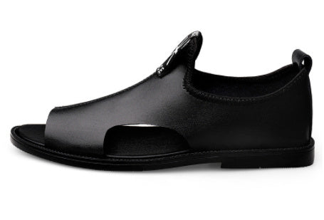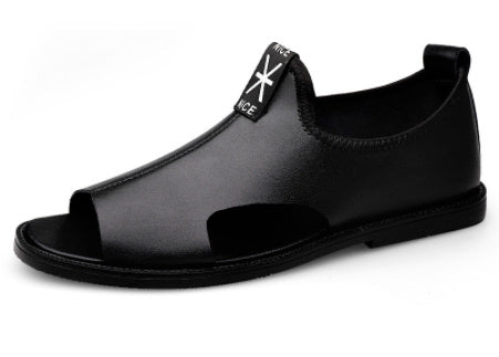 Toed First Layer Cowhide Sandals Men's Bag Heel Side Empty Leather Beach Non-slip Wear-resistant