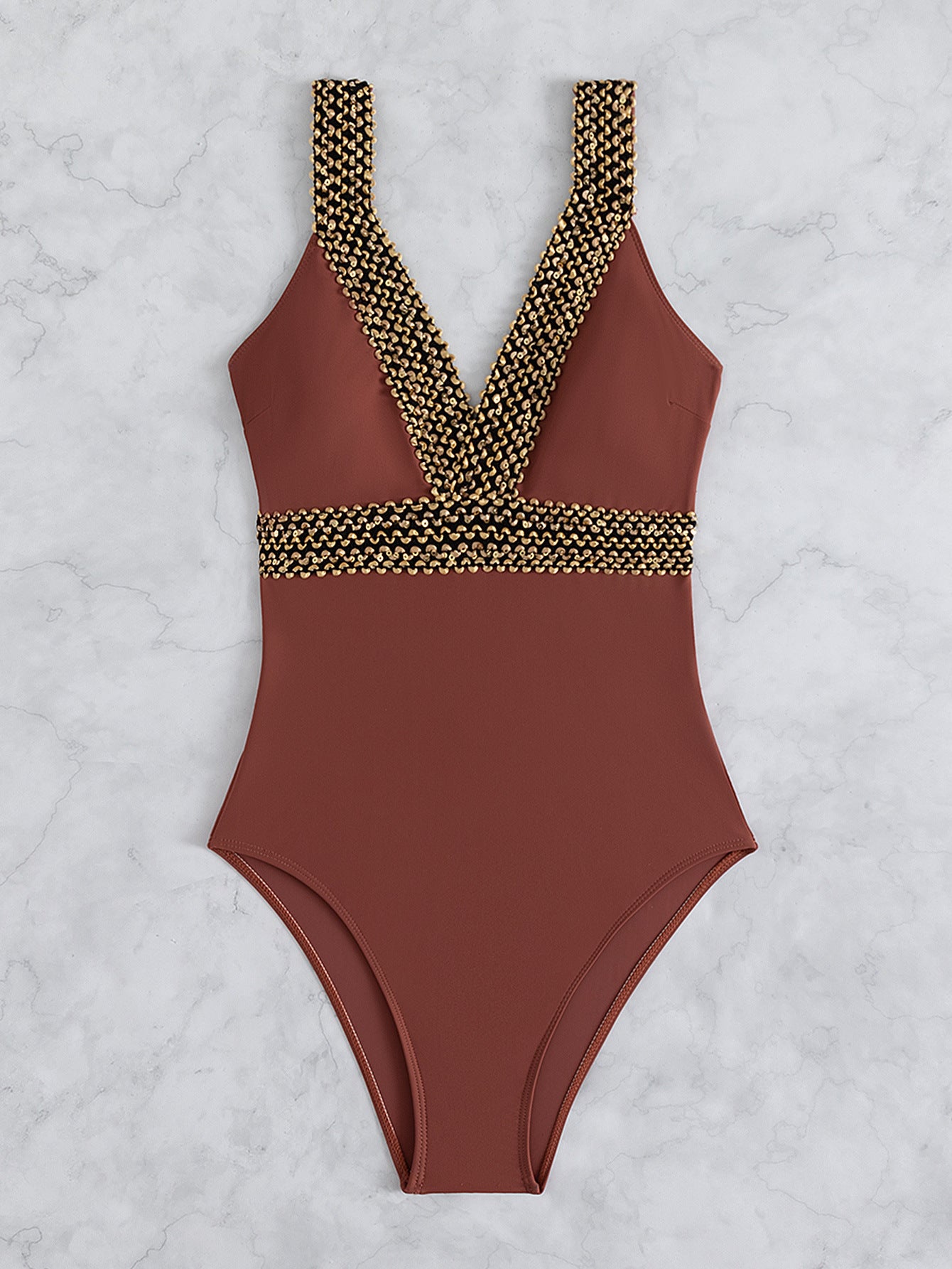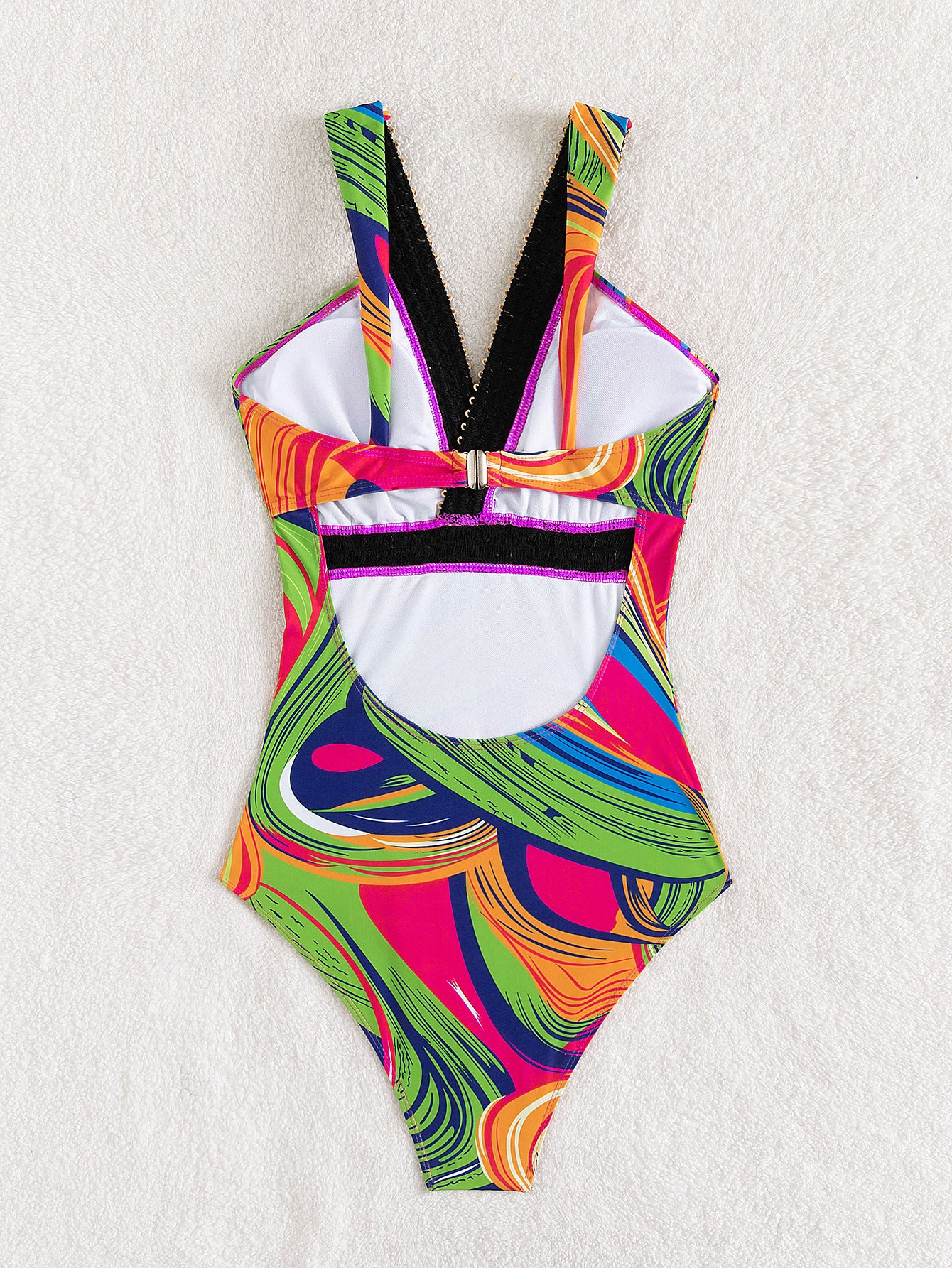 Women's Fashion Deep V Spaghetti Straps One-piece Swimsuit