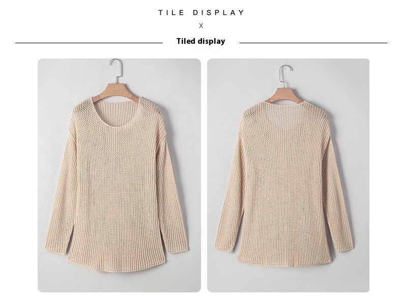 Women's Hollow-out Solid Color Long Sleeve Loose Casual Top