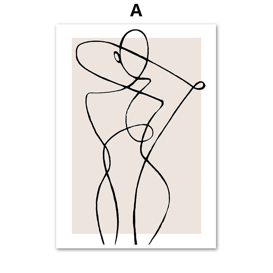 Abstract Female Wall Art Canvas Floral Line Drawing Nordic Poster