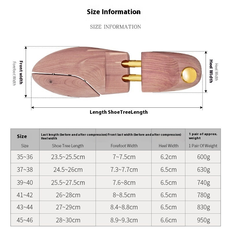 Product information: Color: 35-36,37-38,39-40,41-42,43-44,45-46 Name: Cedar wooden shoe brace Function: Shoes set wrinkle resistant Material: Cedar wood, metal accessories Color:... Read more