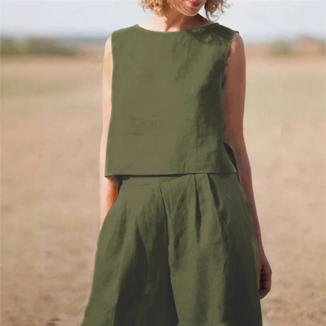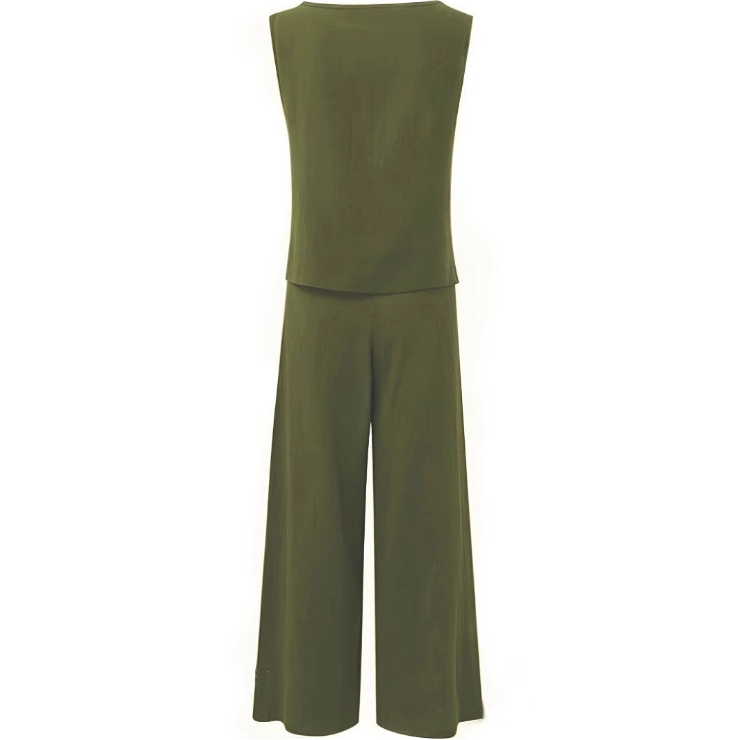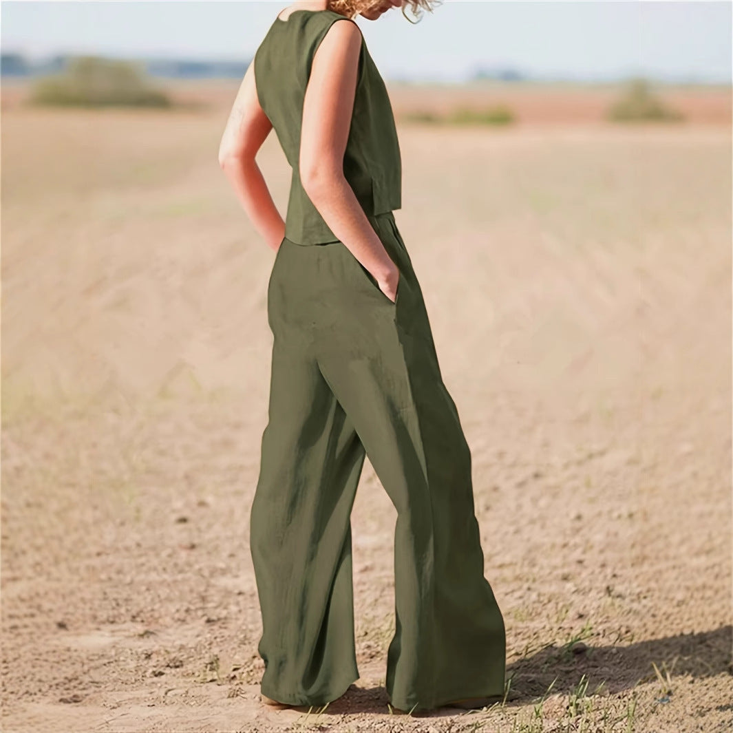 Women's 2-piece Minimalist Solid Color Casual Pants And Vest Set