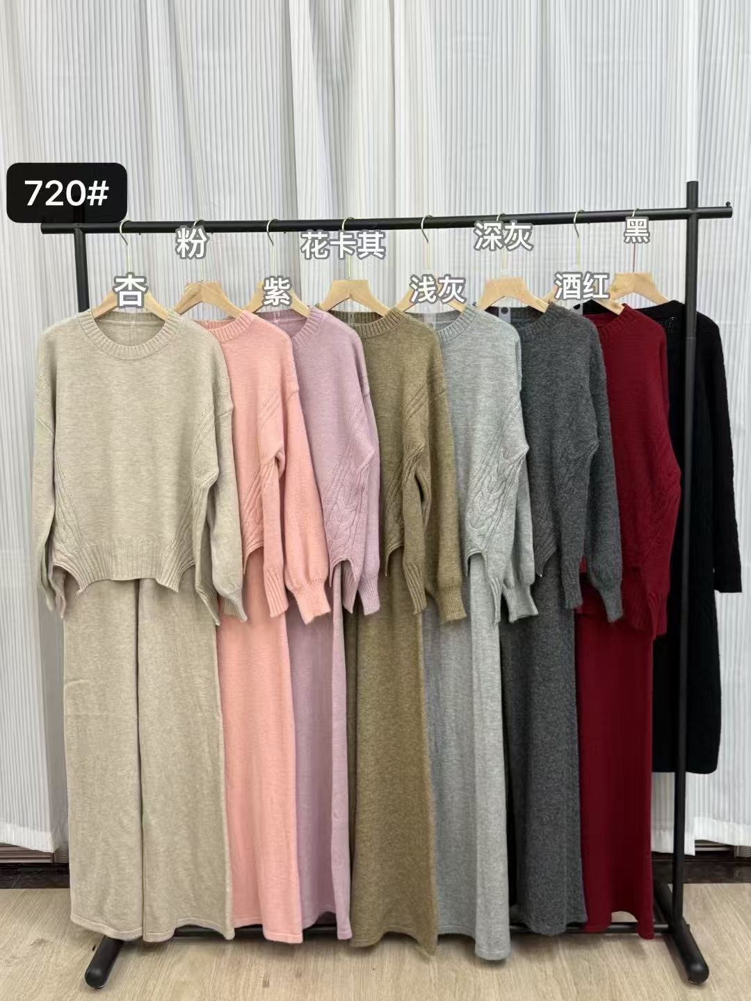 Women's Knitted Sweater Straight Wide-leg Pants Suit New Western Style
